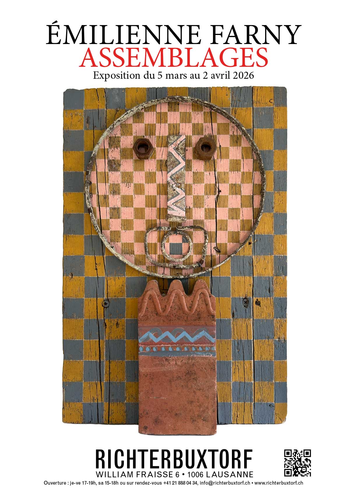 À partir du mois de mars, la galerie présentera une exposition consacrée aux œuvres d’une figure majeur de l’art contemporain suisse : Emilienne Farny (1938-2014). Consacrée à ses assemblages, cette exposition réunit des œuvres peut-être moins connues, mais qui reflètent le talent débordant d’Emilienne, ainsi que ce regard si particulier qu’elle portait sur le monde. Une exposition à venir découvrir du 5 mars jusqu’au 2 avril 2026.