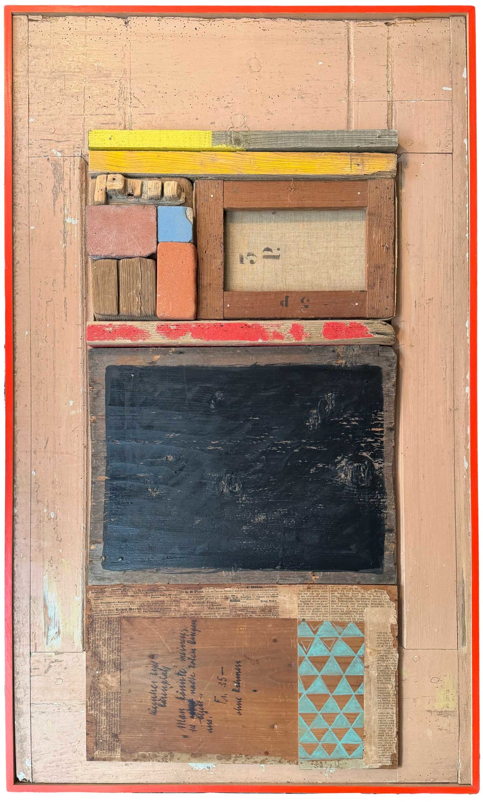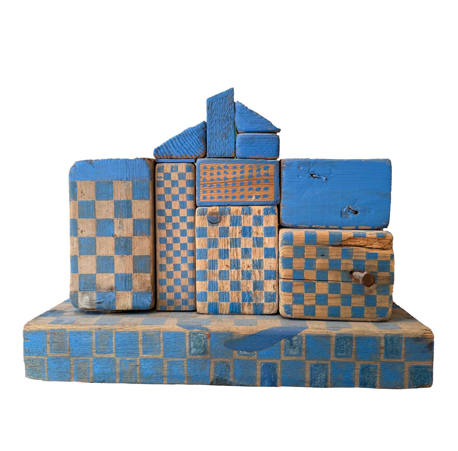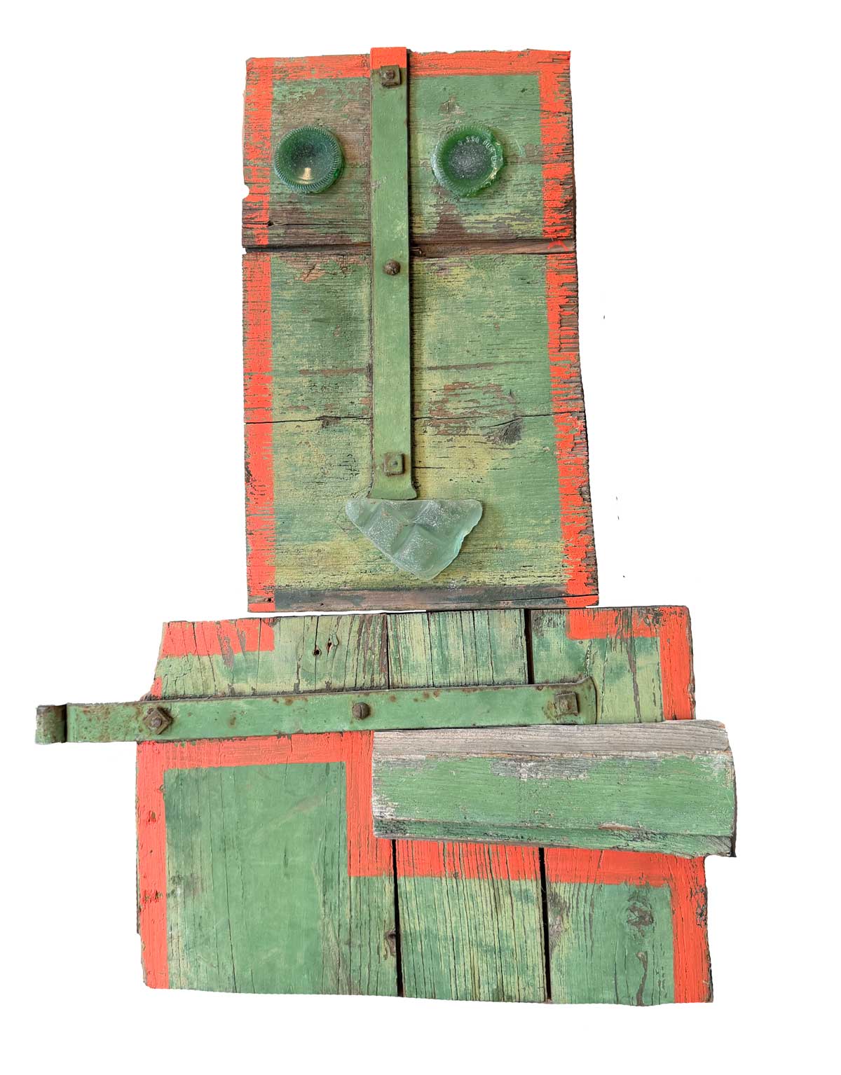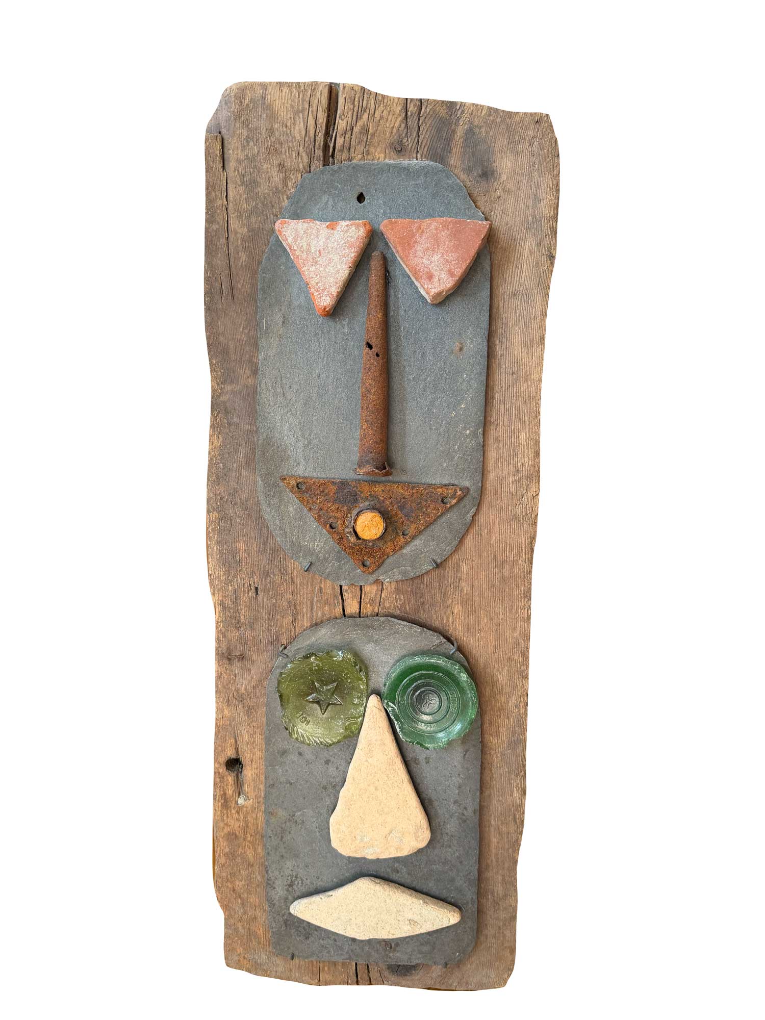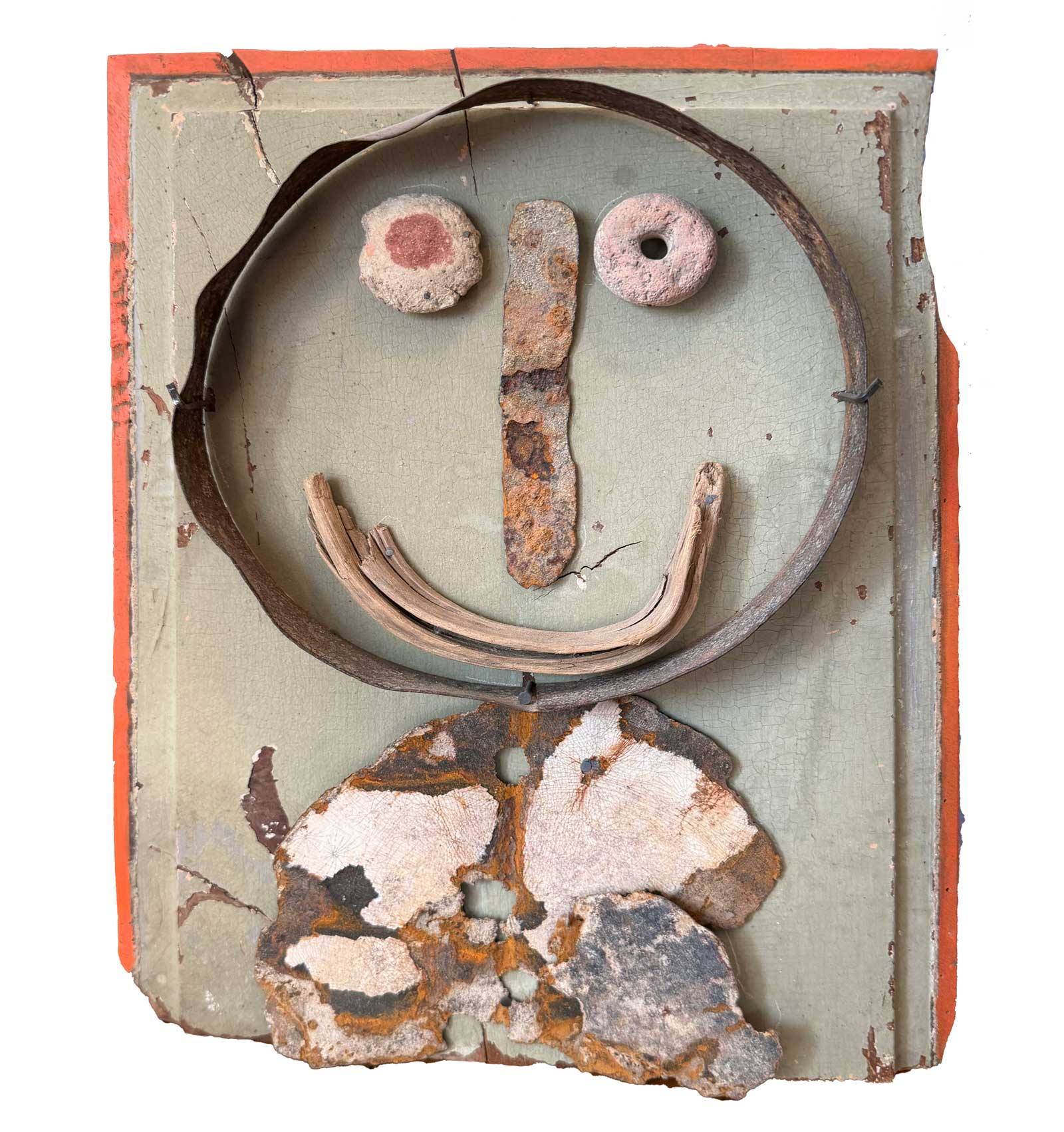 Connue d’abord pour ses peintures à la frontière entre le pop art et l’hyperréalisme, Emilienne Farny se distingue dès les années 2000 avec une production nouvelle : ses assemblages. Chez l’artiste, cette technique procède en deux temps. Le premier est celui de la balade et de la collecte. C’est le temps de l’émerveillement. Au gré des sentiers, l’artiste amoncelle divers objets dont elle fait la collection : cailloux, pièces de métal, débris rouillés, déchets de plastique, planches, bois flottés, autant de fragments de l’expression urbaine laissés à l’abandon et qui segmentent la trajectoire des promeneurs. S’en vient ensuite le temps de la composition, celui de la réunion de ces résidus en un tout qu’est l’œuvre d’art. Sous l’entrée « assemblage », le Dictionnaire de l’Académie française propose la définition suivante : « se dit surtout de la réunion d’objets hétéroclites produisant un tout bizarre ». Bizarre, certes, en ce que rien ne prédestinait ces débris à l’assemblage, mais non moins cohérents, sinon harmonieux. C’est bien là l’essence même des assemblages d’Emilienne : parvenir, à partir du désordre du monde, à une unité nouvelle.